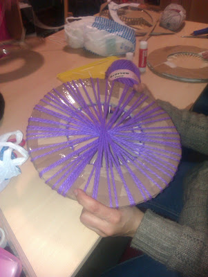 | Algunas trabajaron sobre la mesa, otras encima de las piernas, otras preferían con el telar en vertical...fueron encontrando su estilo. |